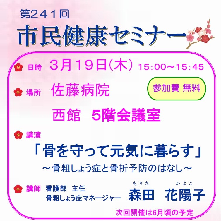 医師や看護師、薬剤師や管理栄養士等の専門職が、地域の皆様に役立つ医療情報や生活習慣の見直し、健康に関するお話しをします。無料ですのでお気軽にご視聴・ご参加ください。