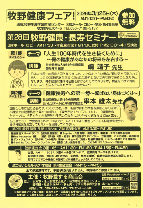 第28回 牧野健康・長寿セミナー 2026年3月26日(木)PM1:30受付 PM2:00~4:15講演