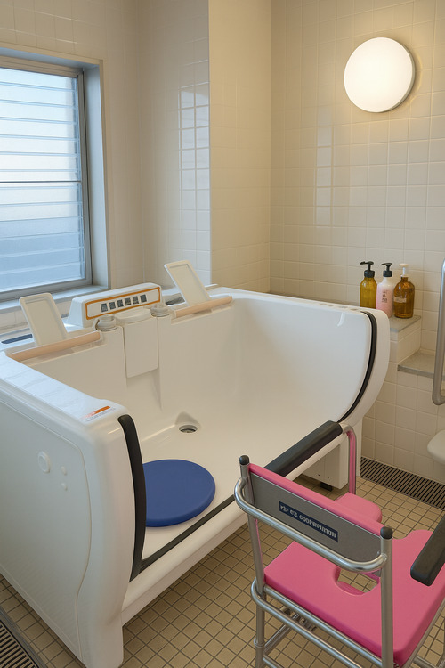 温かい湯船に浸かることで、全身が温められて血の巡りが良くなるほか、水圧にはマッサージ効果が、浮力にはリラックス効果があり、心身共に良い影響を与えます。入浴介助を適切に行い、施設での生活をより快適にお過ごしいただけるよう支援していまいります。