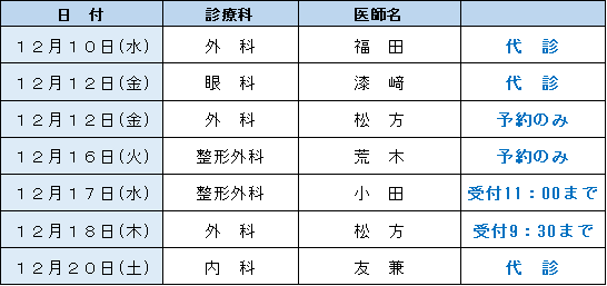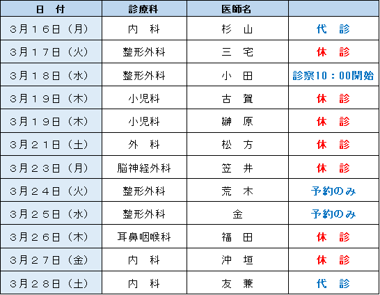 外来診療担当表・休診情報