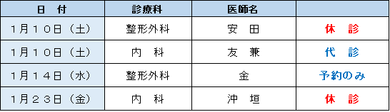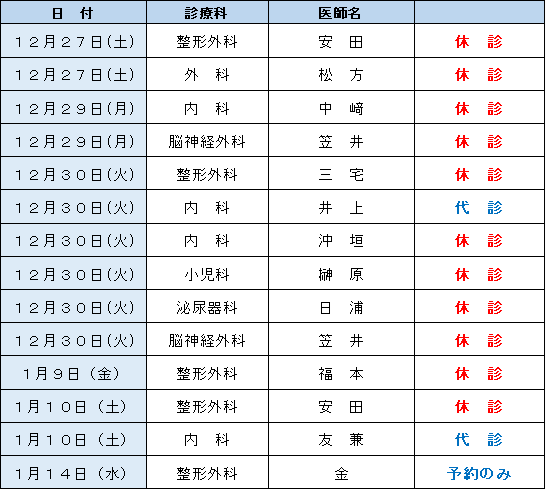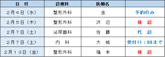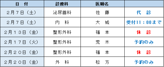 外来診療担当表・休診情報